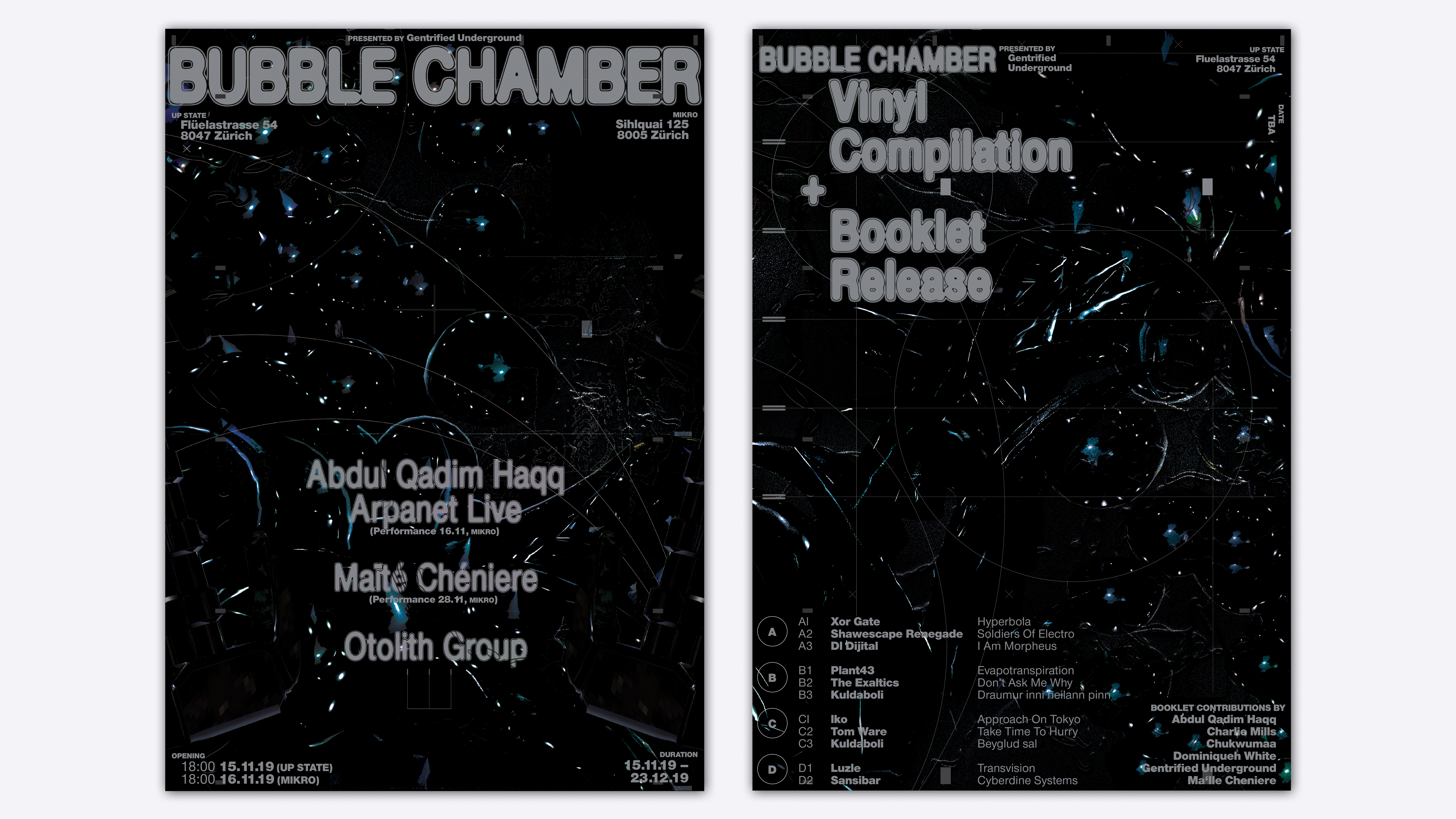 Poster design concept for the Drexiya event and for the booklet release in Zurich, presented by Gentrified Underground.